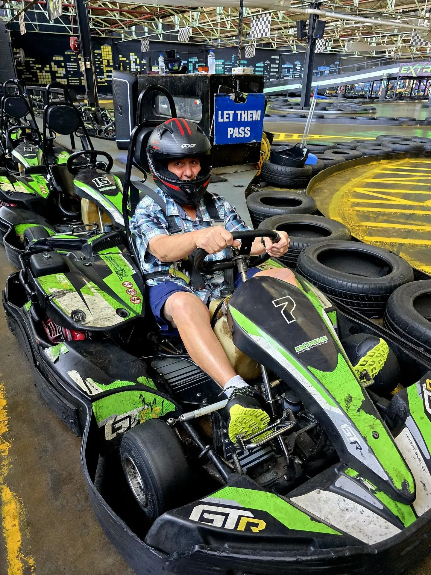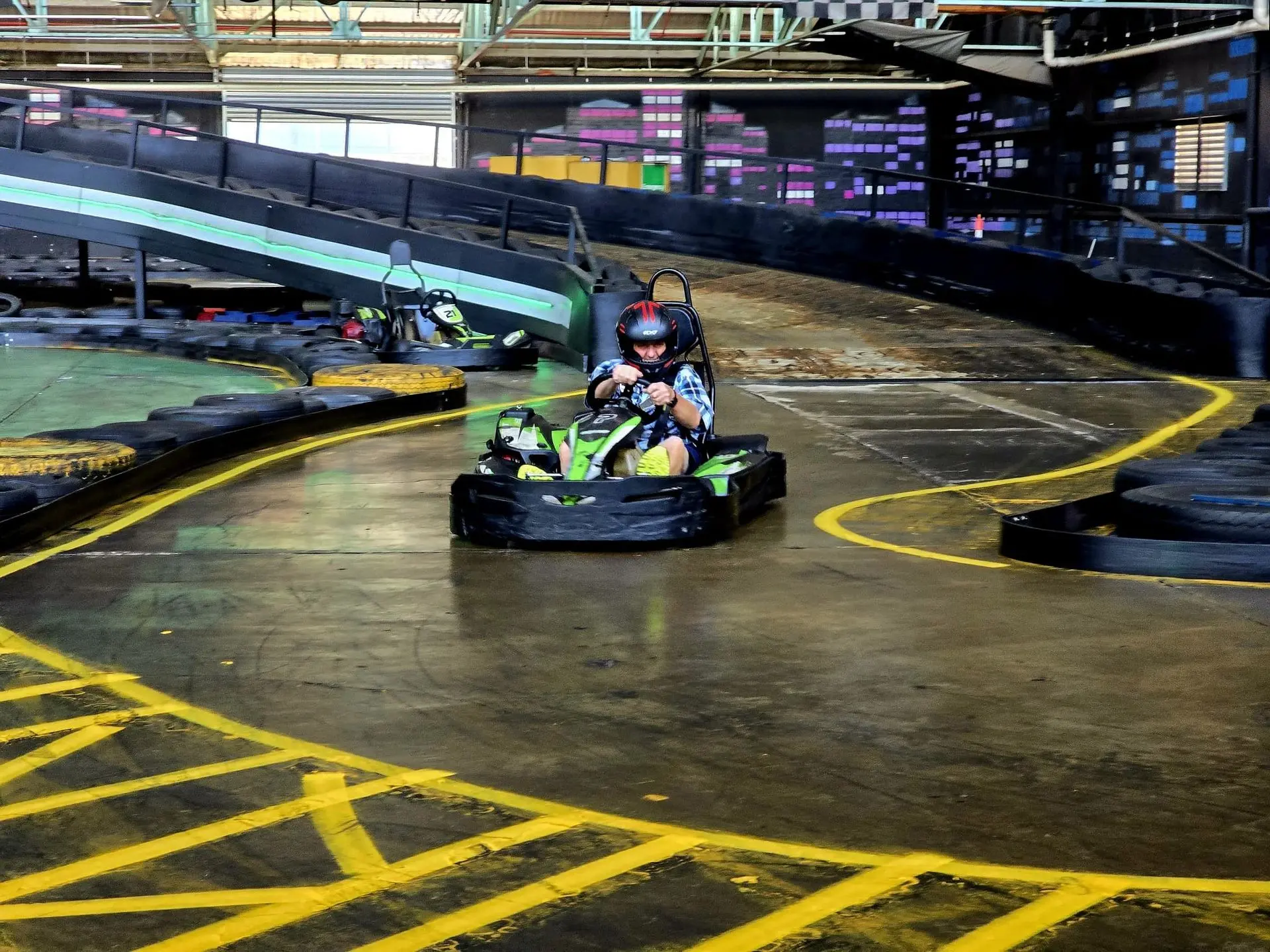 Elijah, enjoyed an exciting new experience — his very first go-karting session!
